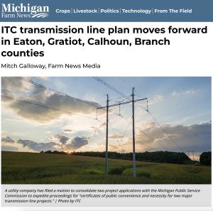 Alan and Matthew quoted in Farm News article on ITC transmission line project in Eaton, Gratiot, Calhoun, and Branch Counties